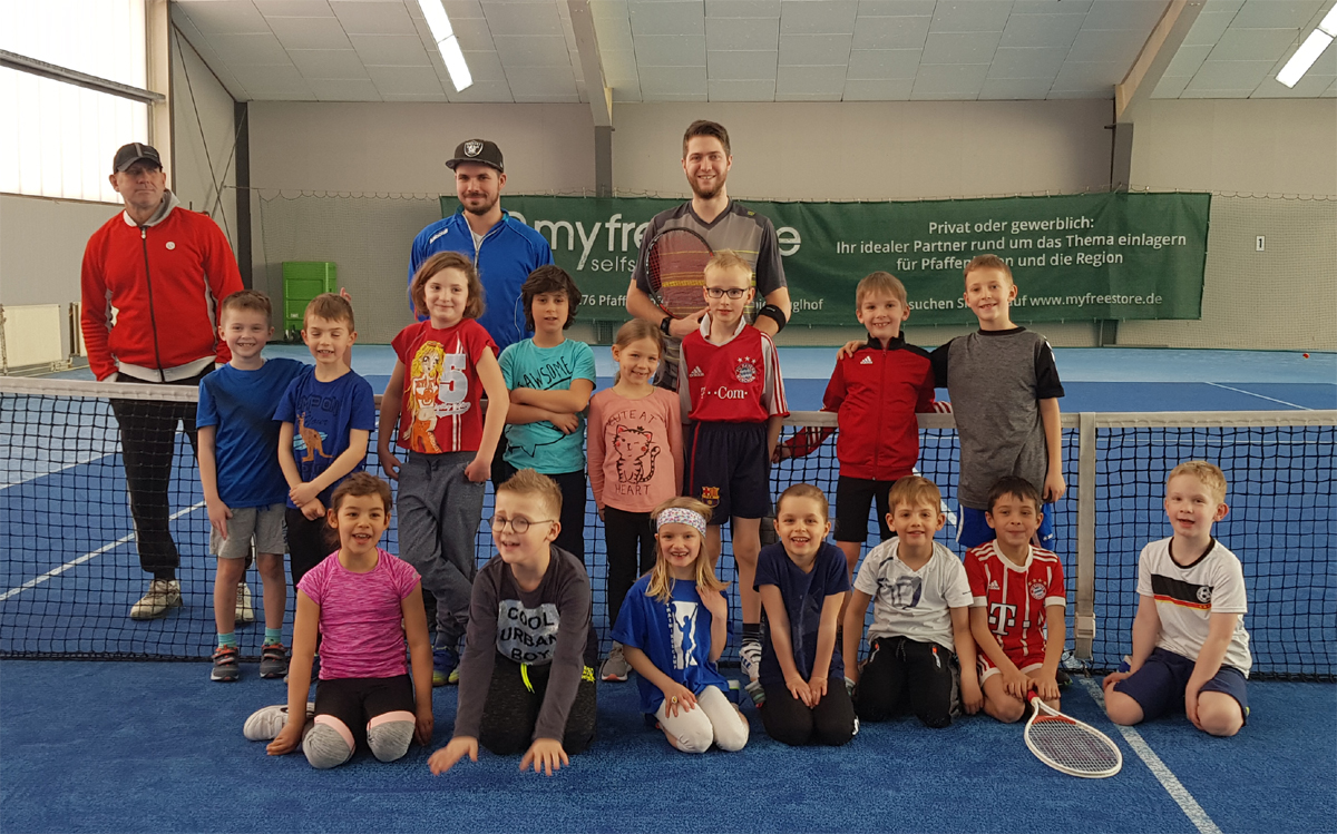 21 Schüler (!!!) der 1. und 2. Klassen von der Joseph-Maria-Lutz- sowie der Niederscheyerer Schule machten unter der Anleitung unserer Trainer Christian, Thomas und Louis spielerisch ihre ersten Erfahrungen mit dem Tennissport.